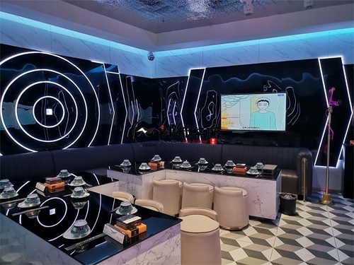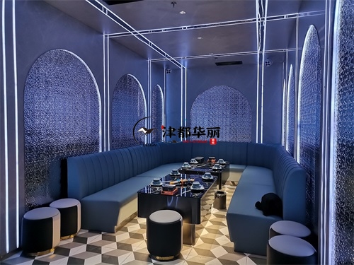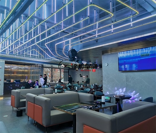 今天分享的是银川鼎龙餐厅设计装修项目实景鉴赏,该项目以“未来感与时尚感深度融合”为设计核心,致力于打造一个兼具餐饮与娱乐功能的沉浸式空间。在视觉设计上,空间大量运用霓虹光源与几何元素,例如墙面环绕的环形灯带、立体几何装饰结构,并以高对比度的黑白主色调为基底,成功营造出极具赛博朋克风格的前卫氛围,精准匹配年轻消费群体对潮流社交空间的需求。功能布局上,该餐厅巧妙融合KTV包厢的休闲属性与传统餐厅的用餐功能,采用卡座与餐桌一体化的设计方案,在保障用餐便捷性的同时,充分满足消费者的社交娱乐需求。银川装修公司津都华丽团队在本次项目中,深度践行潮流沉浸式餐饮空间的设计理念。