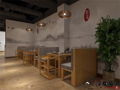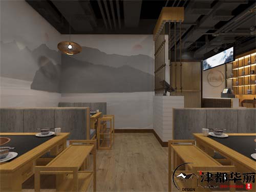 今天分享的是火锅店装修设计案例,本次火锅店主营粥底火锅,以健康养生的饮食理念,将粥和火锅完美的结合在一起。走进火锅店,首先踏过一间小院。小桥流水,青山翠叶,木色桌椅,大厅的装修颇有清新气息,这样的室内设计可谓别具一格。古典幽雅的火锅店环境,古色古香的灯饰和瓷砖,包括墙上置挂的装饰画,都与火锅店整体风格浑然一体,自然和谐。空间更有岁月感的同时不乏现代风,顾客可以品味岁月蹉跎之风味,暖黄色的灯带通过巧妙的设计,创造出诗情画意的景观,大厅使用隔断式设计显得更加有层次感。包间可以满足顾客的各种用餐需求,家庭聚会、商务宴请、公司团建等。